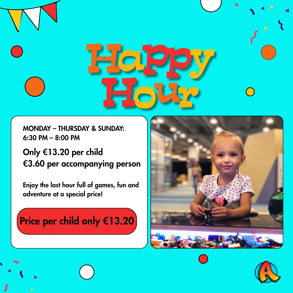 Enjoy the last hour full of play, fun, and adventure at a special price!