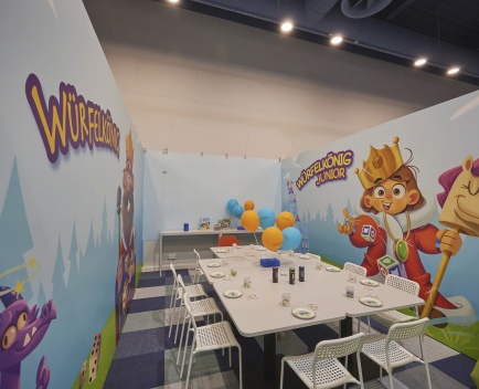 Jedes Kind erhält zudem ein kleines Geschenk, und im Raum stehen verschiedene Gesellschaftsspiele bereit, die gemeinsam ausprobiert werden können – für jede Menge Spielspaß während der Feier.