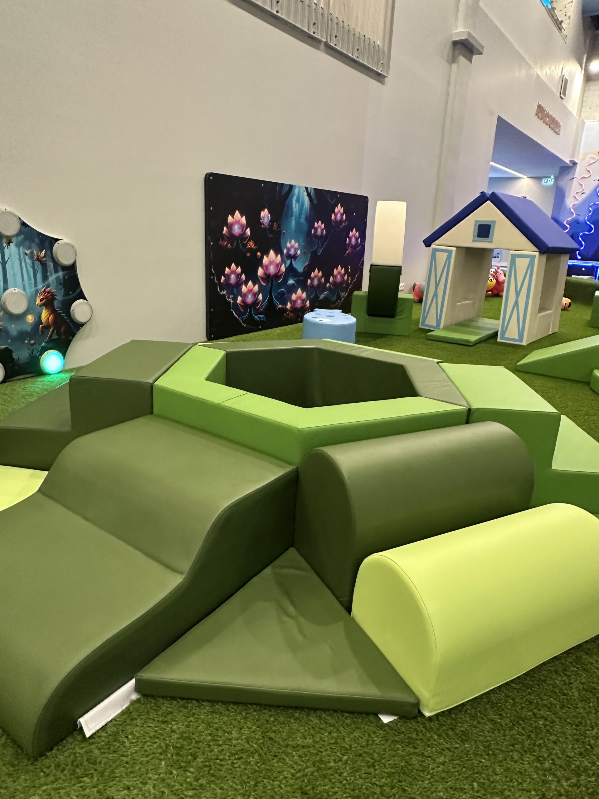 Unser Soft Playground bietet eine sichere und farbenfrohe Umgebung mit gepolsterten Strukturen, Tunneln und Kletterelementen - perfekt für kleine Entdecker zum Spielen, Krabbeln und zur Entwicklung ihrer motorischen Fähigkeiten.