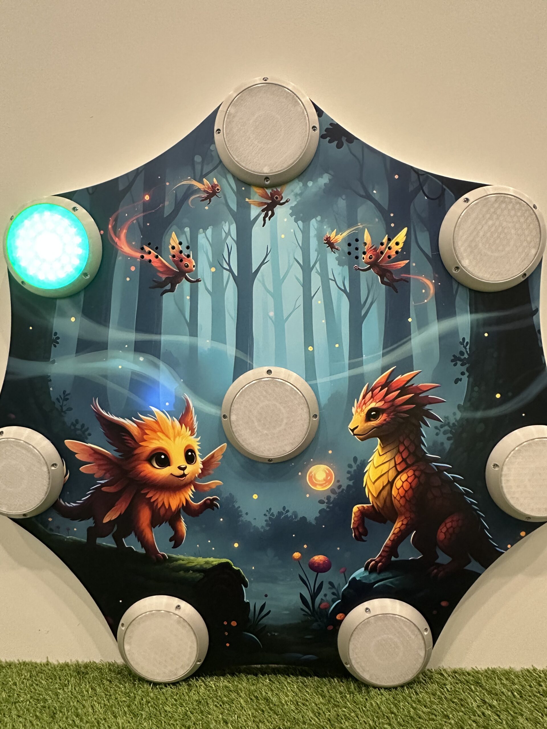 Ein gemütlicher, sicherer Raum für Kinder bis zu 3 Jahren - mit weichen Oberflächen zum Krabbeln, Spielbrettern, interaktiven Spieltafeln und altersgerechtem Spielzeug, das die Neugierde weckt und die frühe Entwicklung fördert.